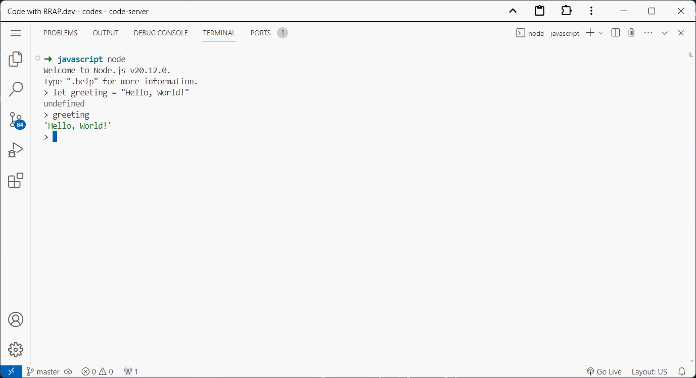 The Pro Linux Container of Brap is pre-configured with JavaScript via Node.js. Node.js allows us to run JavaScript anywhere, such as in the server-side (Back-end) via the terminal, whereas in the past, we could only run JavaScript in the client-side (Front-End) via a web browser.