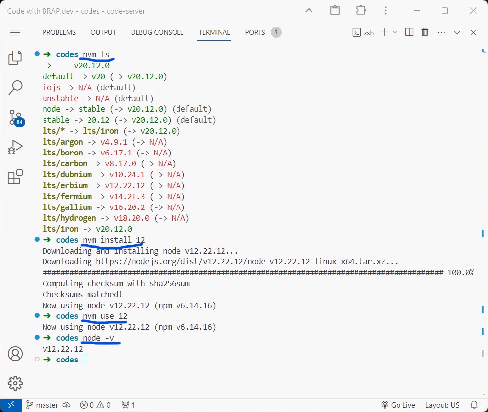 The Pro Linux Container of Brap is pre-configured with Node Version Manager (NVM). With NVM, you can easily install and run multiple versions of Node.js.