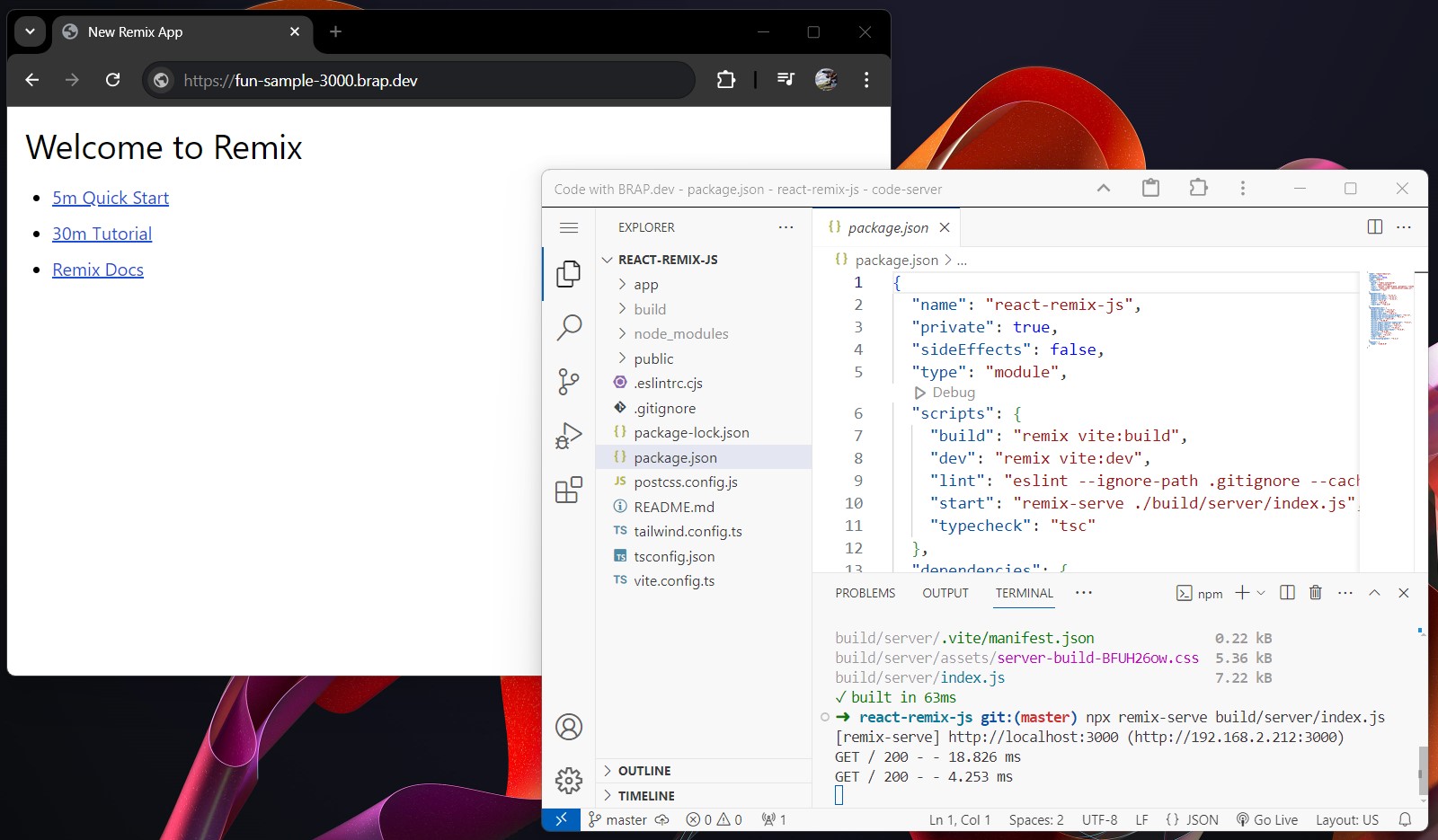 To create a new React-powered Remix appication and start the develop server for it, run:
